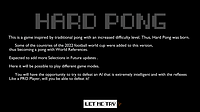 This is a game inspired by tradition Pong with an increased difficulty level. Thus, Hard Pong was born. Some of the Countries oof the 2022 Football World Cup were added to the first version, thus beco...